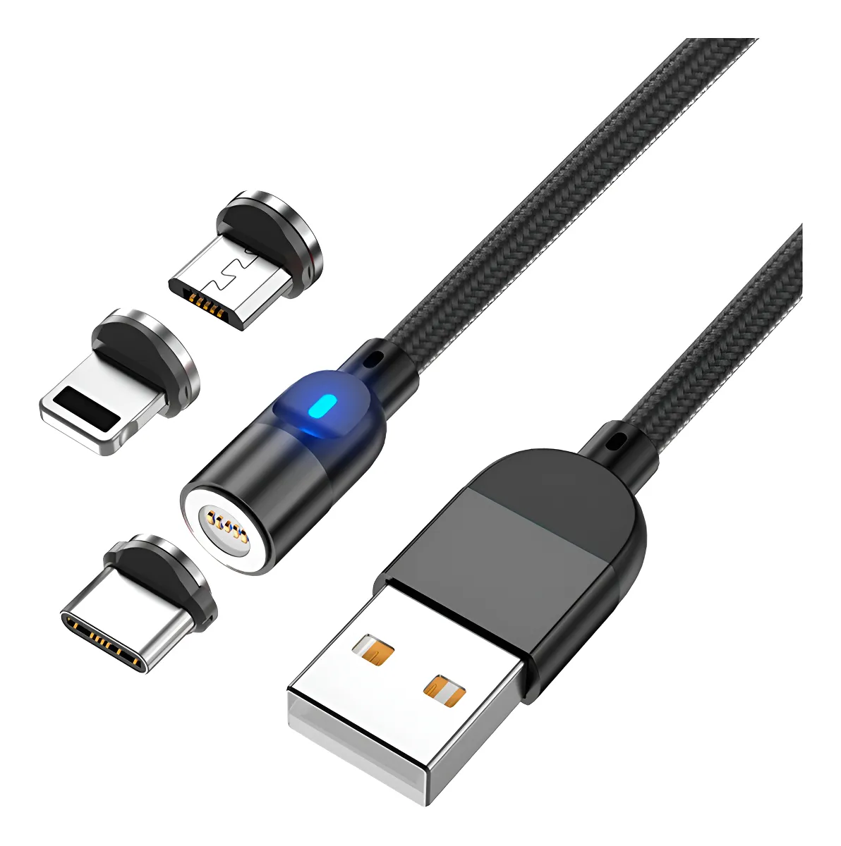 Cable Usb Magnetico 3 En 1 Carga Rapida Alta Calidad Color Negro